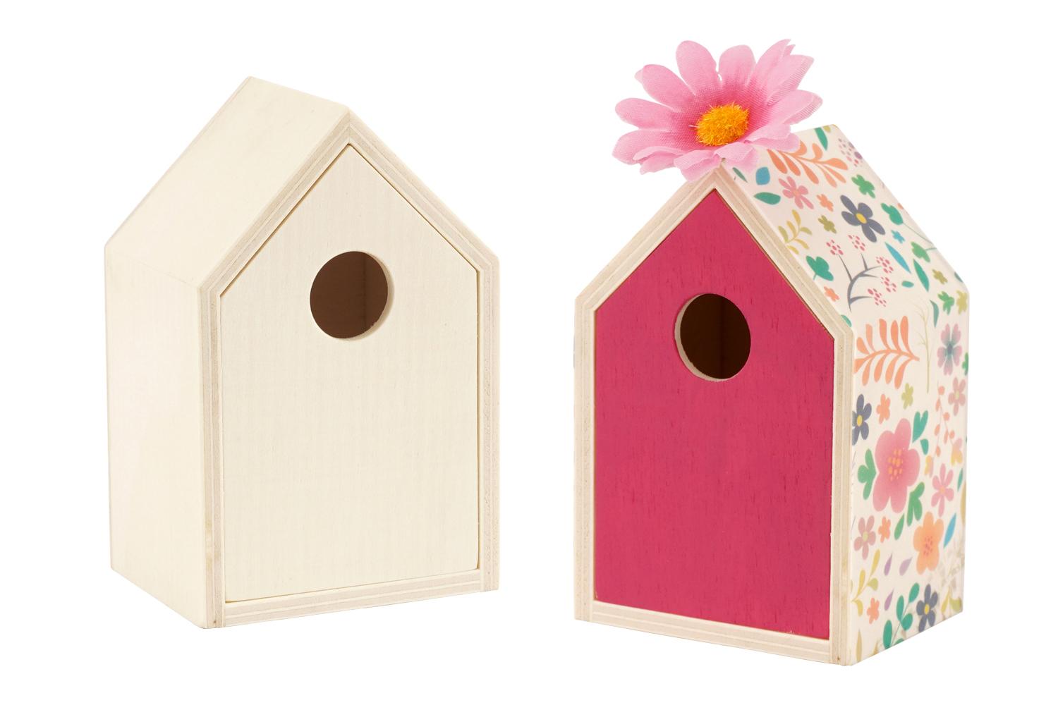 La surface en bois lisse est très facile à travailler. Vous pouvez utiliser de la peinture acrylique pour colorer la toiture ou les murs. Pour ajouter des motifs sans difficulté, pensez au papier washi ou au décopatch. Enfin, agrémentez le tout avec des petits accessoires comme des fleurs en papier ou des stickers pour donner du relief à votre création.