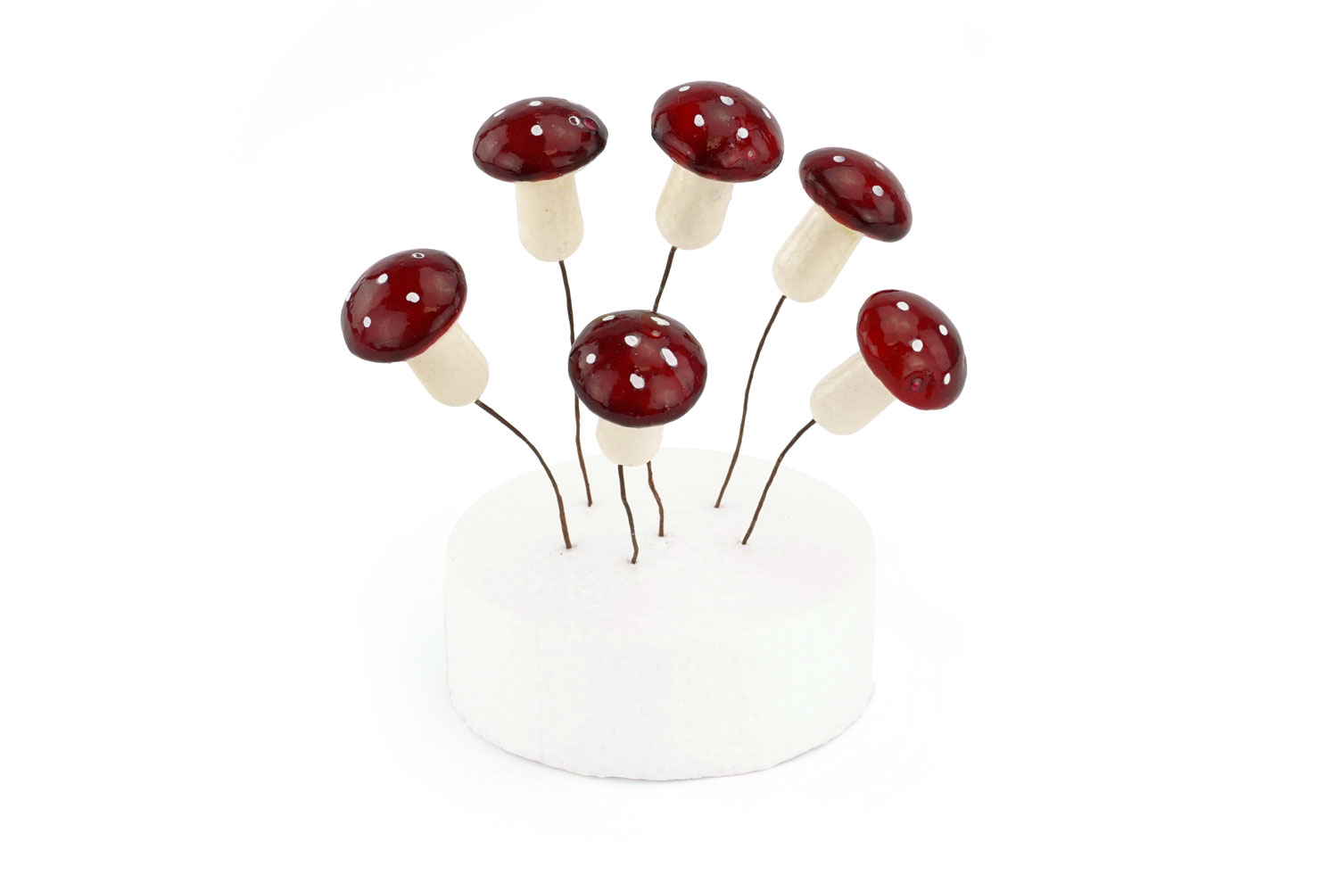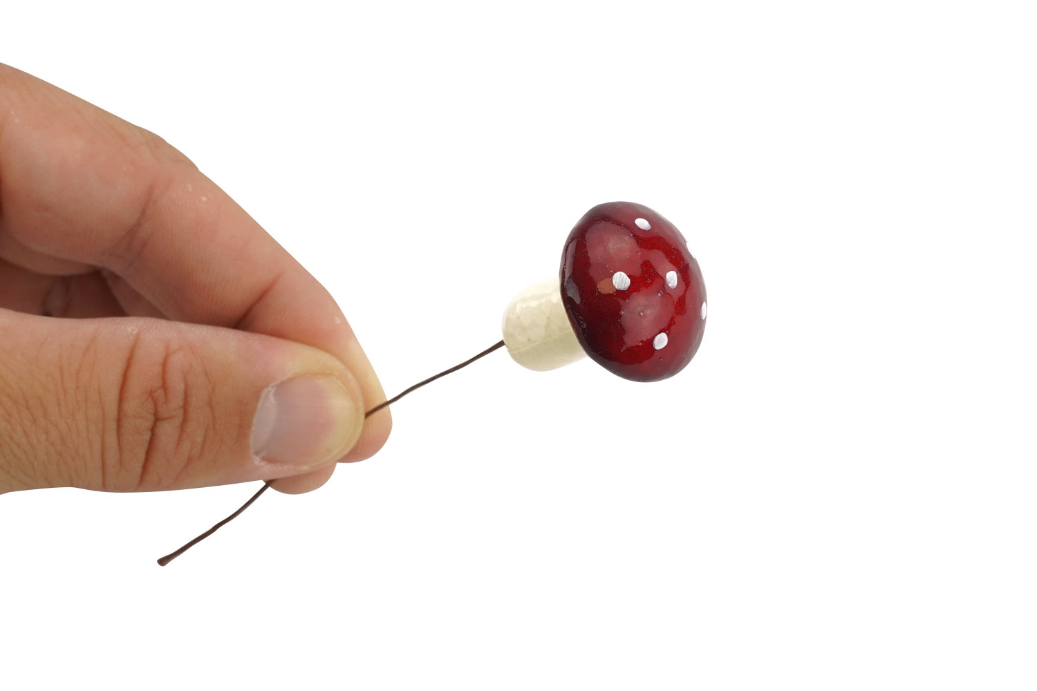 Ajoutez une touche naturelle à vos décorations avec ce set de 6 petits champignons en polystyrène peint. Grâce à leurs tiges métalliques fines et flexibles, ils sont parfaits pour être fixés dans de la mousse de fleuriste, du polystyrène ou d’autres supports créatifs.