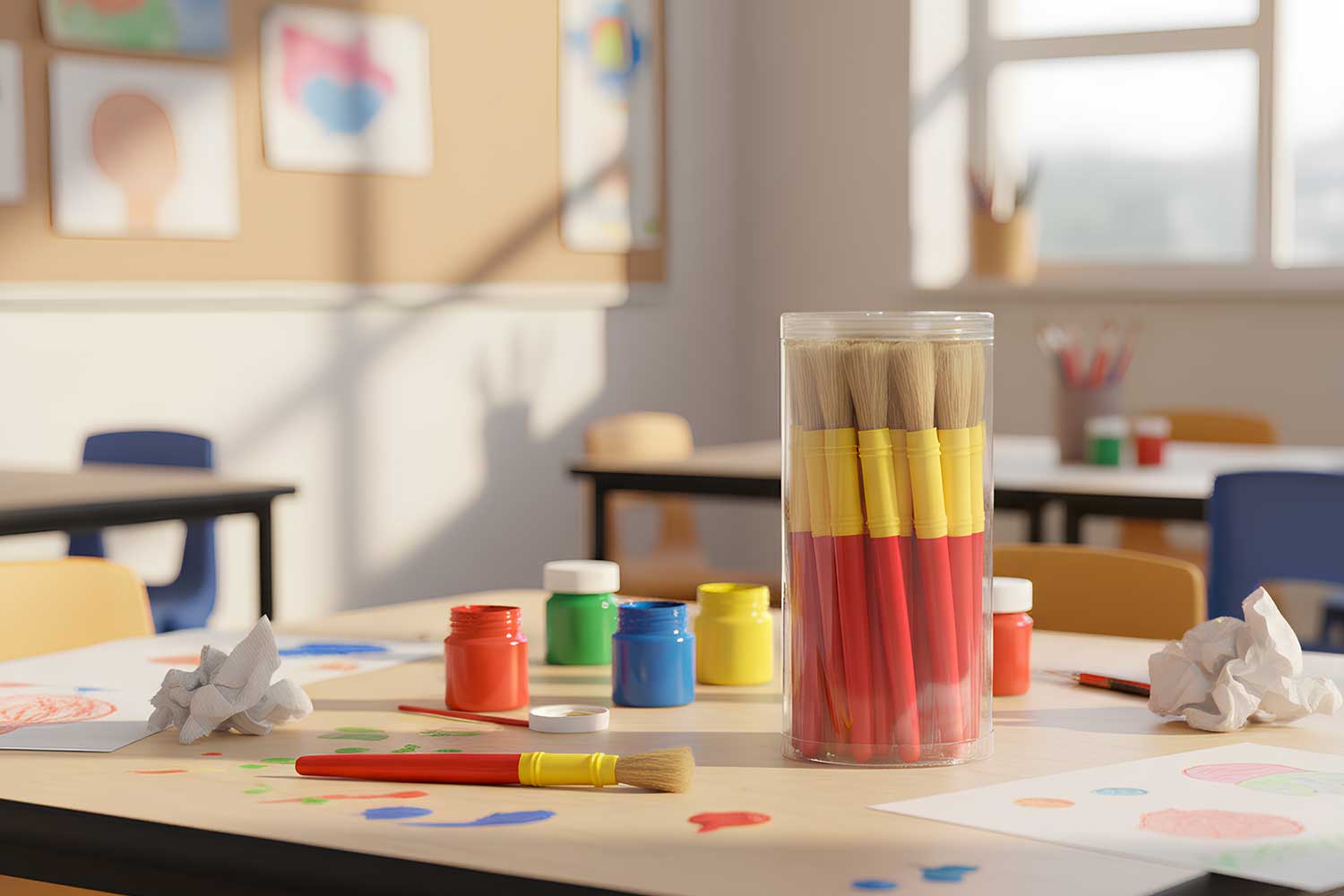 Avec sa longueur de 18 cm, il tient bien en main et offre une excellente prise pour les tout-petits. Résistant et agréable à utiliser, il deviendra vite le compagnon préféré des ateliers peinture à la maison ou à l’école !