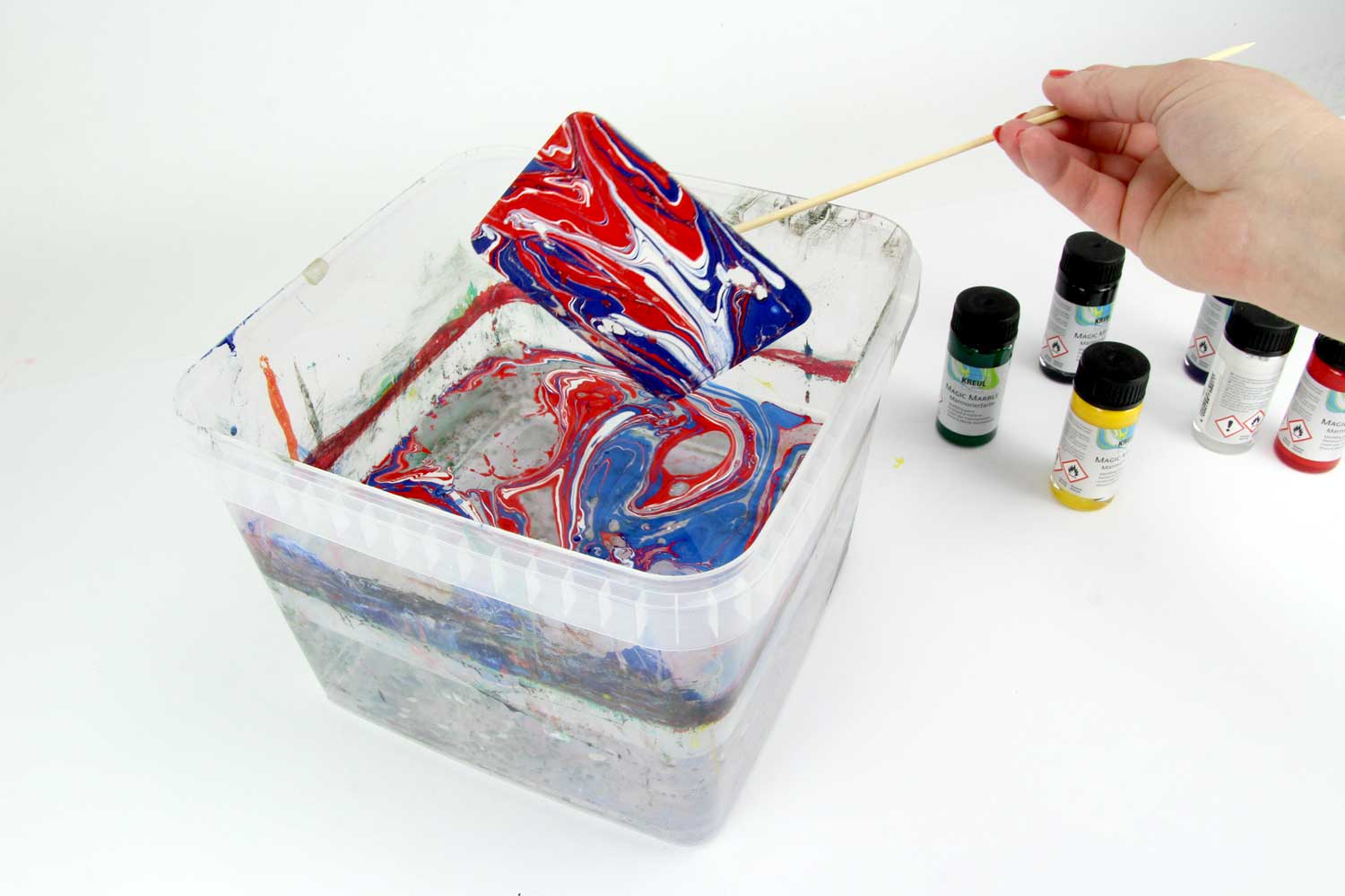 Astuce : Très utile pour peindre des boules en polystyrène sans mettre de la peinture sur les mains.
