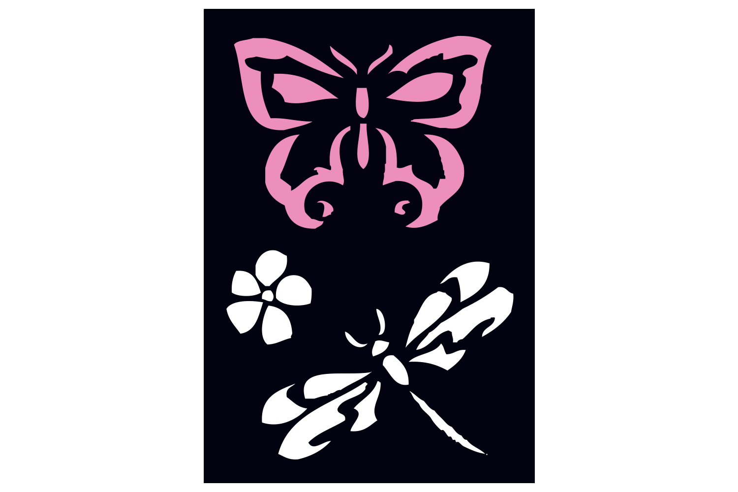 Ce pochoir adhésif souple permet de reproduire avec précision des motifs de papillons, libellules et fleurs en peinture ou en traçant simplement les contours sur le support de votre choix. Grâce à sa face collante, il se fixe facilement sur diverses surfaces comme le tissu, le verre, le miroir, la porcelaine, le bois, le polystyrène et le plastique. La technique du pochoir est très pratique et convient à tous les âges !