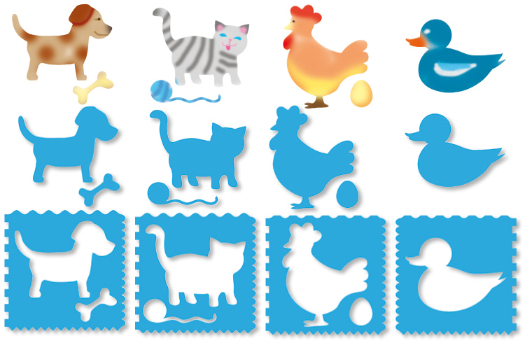 Pochoirs + silhouettes ANIMAUX - 8 pochoirs