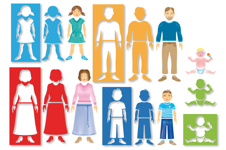 Pochoirs + silhouettes "Famille" - 5 pochoirs