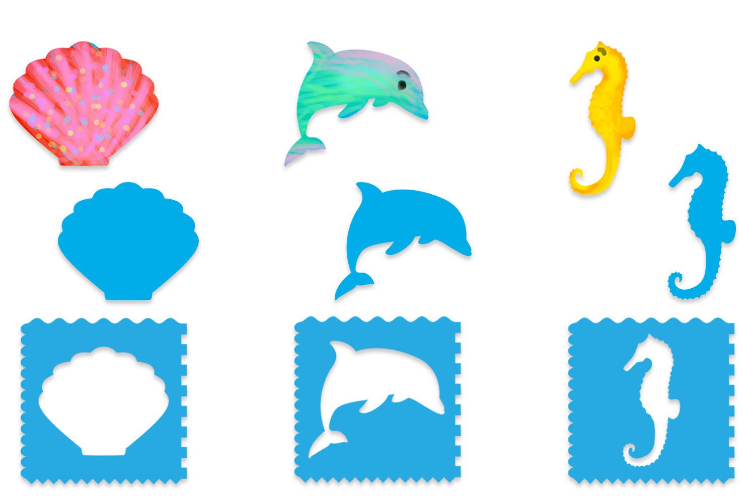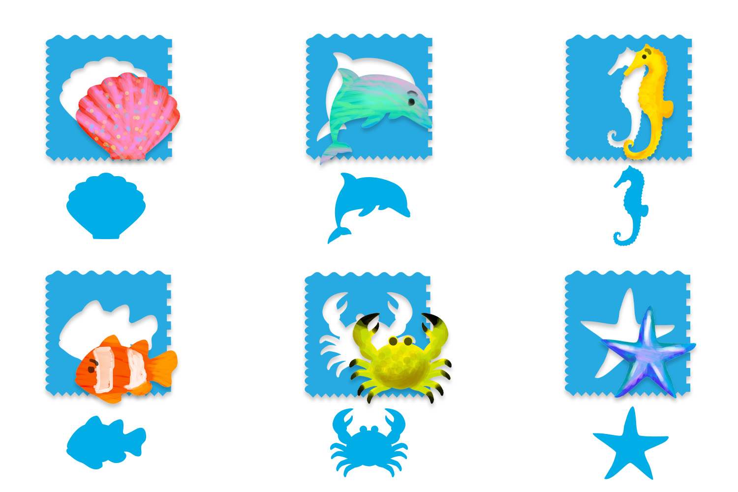 Pochoirs + silhouettes Océan - 6 pièces