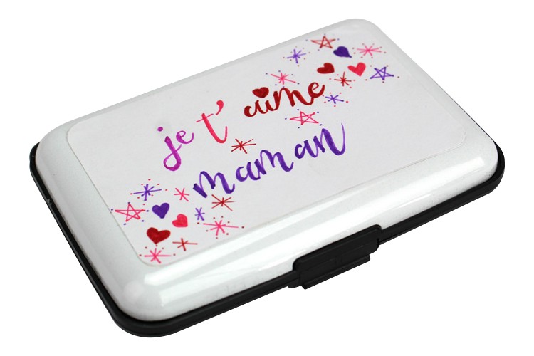 Le porte-carte est livré avec deux stickers blancs en papier que vous pouvez coller sur les deux faces afin de dessiner, ou écrire un message... avec de simples feutres ou crayons de couleur.