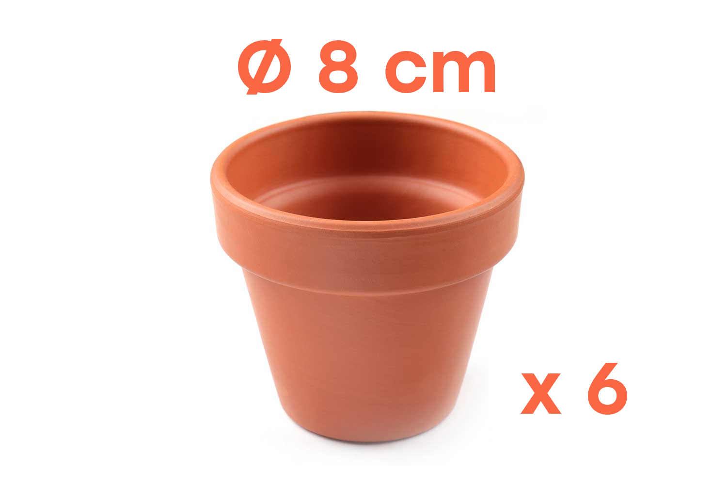 Pots en terre cuite terracotta à décorer. Pots percés à la base pour l'arrosage des plantes. Acheter séparément nos coupelles si besoin.