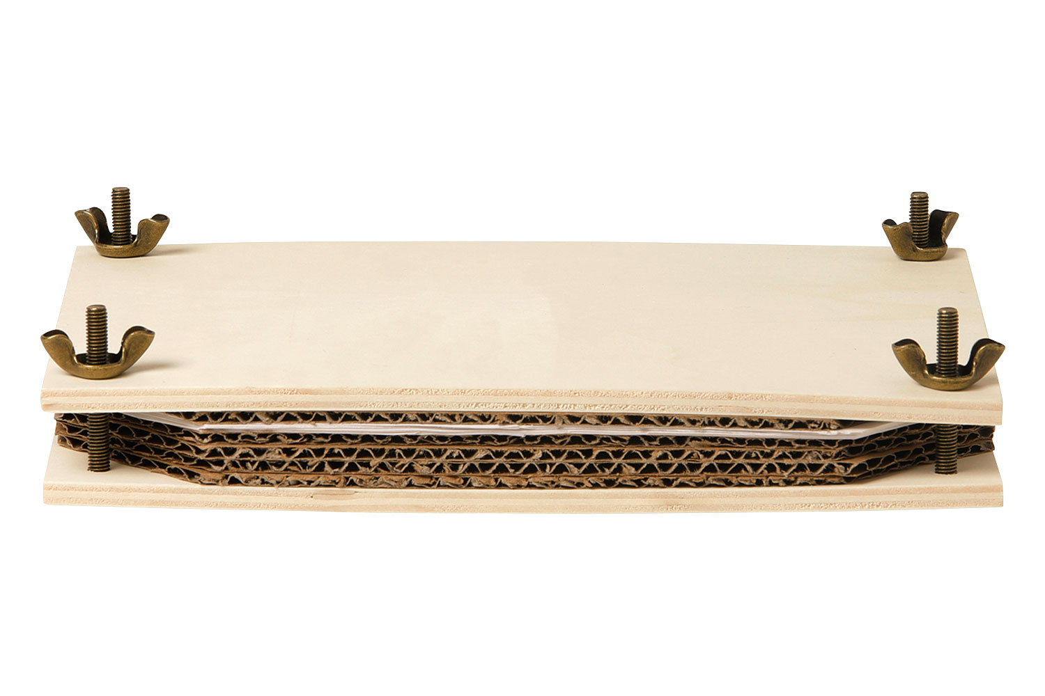 Alternez vos fleurs à sécher entre 2 feuilles puis entre 2 plaques de cartons, et superposez les plaques à l'intérieur de la structure en bois, délicatement venez visser les boulons pour presser les plaques les unes sur les autres.