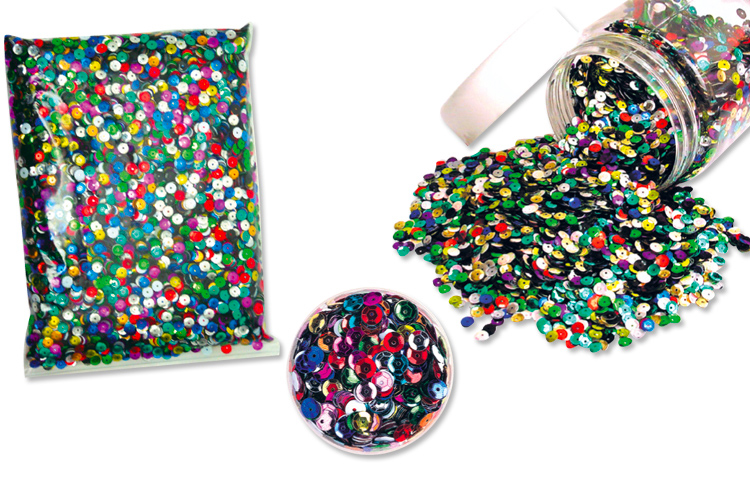 Paillettes sequins couleurs brillantes en vrac avec un trou au centre pour piquer dans du carton mousse ou des sujets en polystyrène pour des réalisations de Noël flamboyantes. Leur forme s'adapte parfaitement à la décoration d'objets en polystyrène, et permettent d'apporter de la couleur et de la brillance à vos créations. Fixez facilement chaque sequin avec une épingle en métal à piquer dans le polystyrène ou le carton mousse.