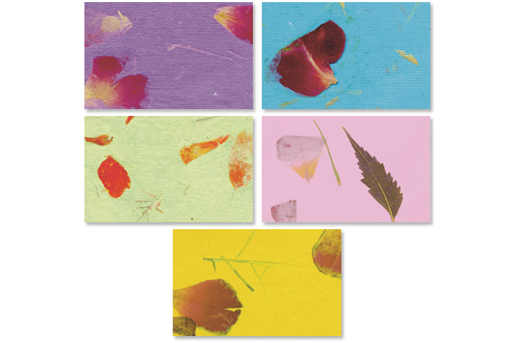 Set de 5 feuilles assorties de papier couleur avec inclusion de pétales de fleurs