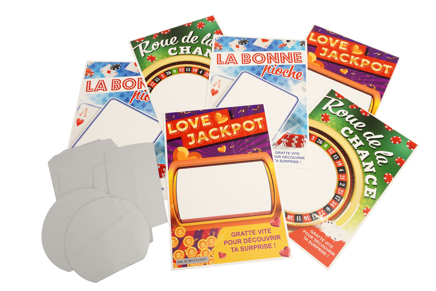 - Inclus : Les cartes cartonnées et les films à gratter autocollants