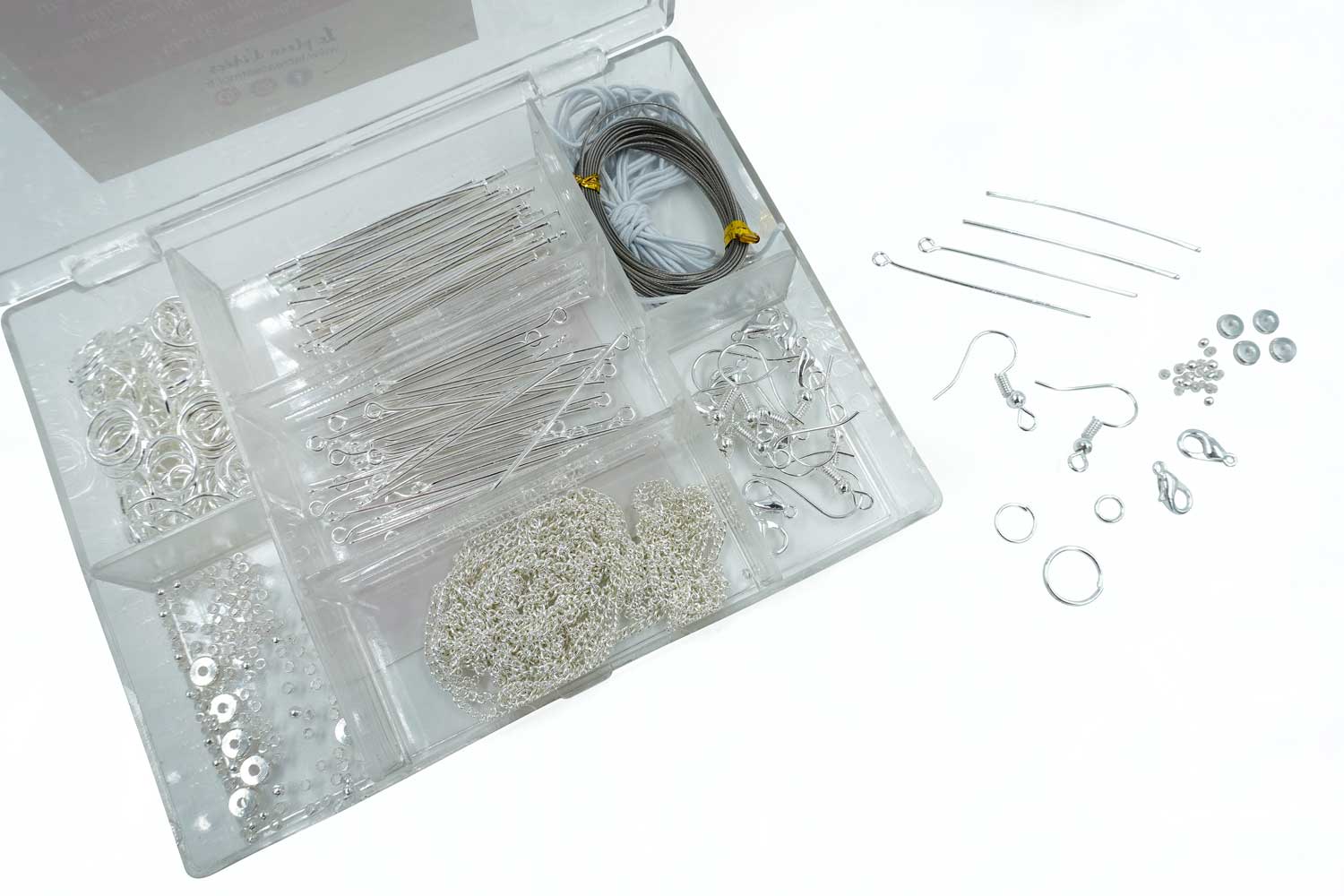 Valisette d'apprêts argentés pour bijoux - 400 pièces