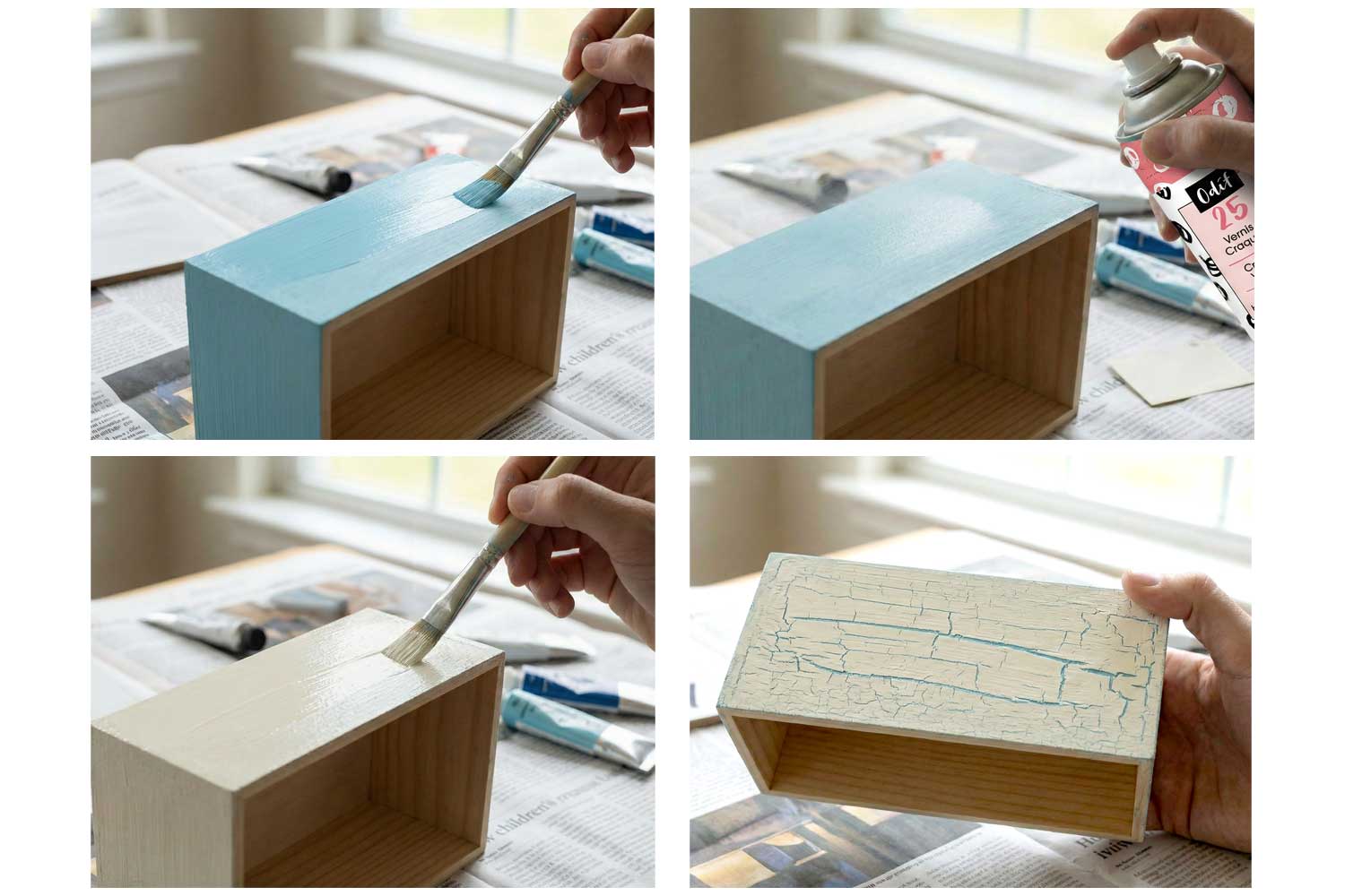 Astuce : une peinture acrylique mat craquelera plus facilement qu'une peinture avec finition satinée ou brillante.